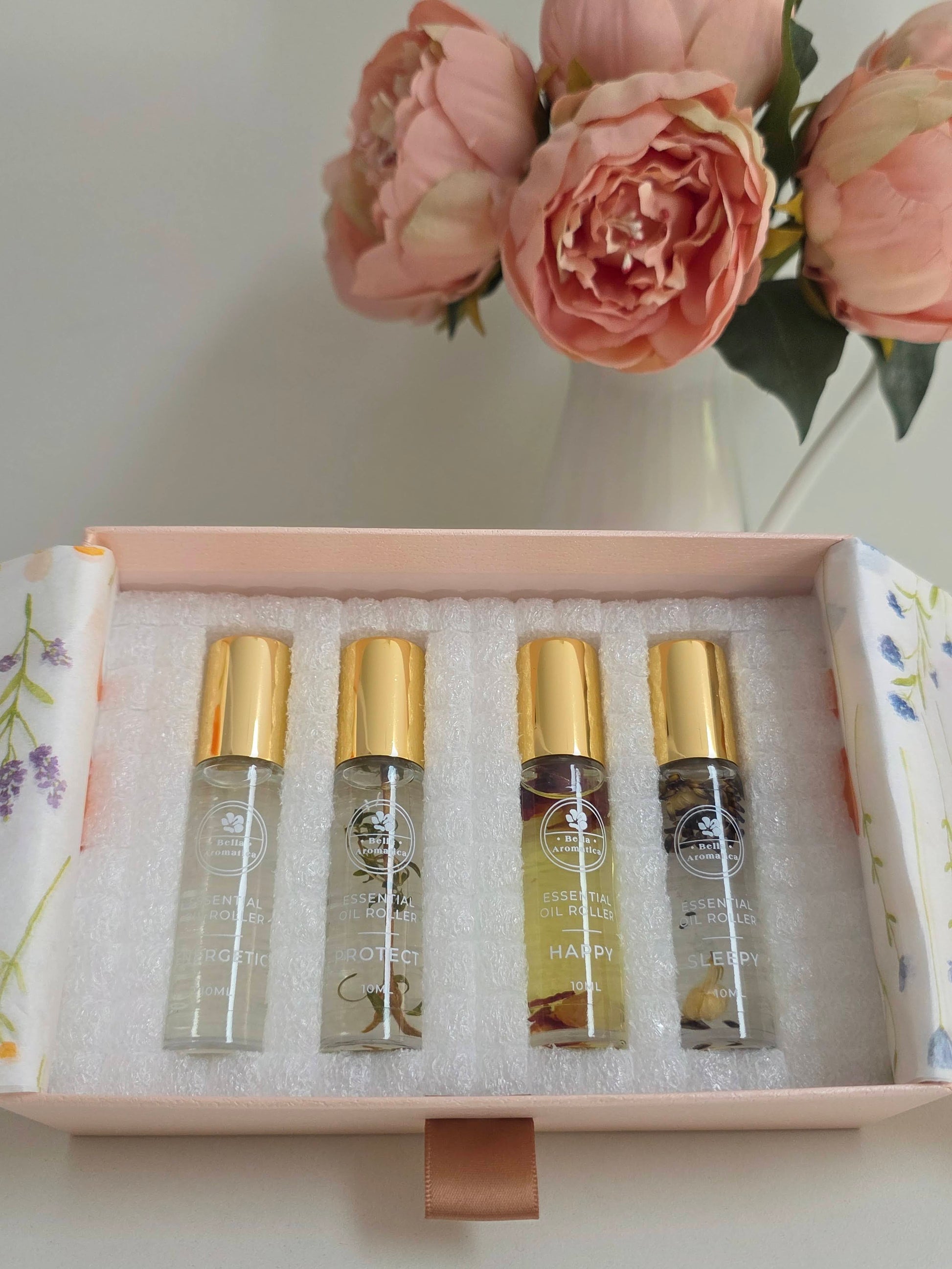 Crafted with 100% pure essential oils and nourishing cold-pressed carrier oils, each roll-on fits naturally into daily life. Whether you want an emotional lift, grounded calm, restorative sleep or intuitive immune support, this set invites you to create simple, mindful moments throughout your day.
